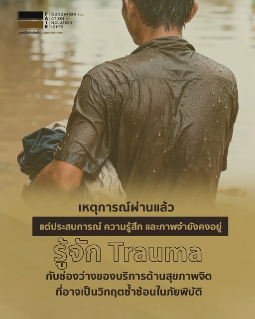 จึงเห็นได้ว่า หลากหลายสถานการณ์นั้นล้วนมีความเสี่ยง ที่จำทำให้เกิดบาดแผลทางจิตใจในระดับบุคคล จนถึงแม้ว่าเหตุการณ์ผ่านแล้ว แต่ประสบการณ์ ความรู้สึกและภาพจำยังคงอยู่ แล้วอย่างยิ่ง “ภัยพิบัติ” ซึ่งมีผู้คนจำนวนมากได้รับผลกระทบ ได้รับรู้อยู่ร่วม การจัดสรรมาตรการช่วยเหลือดูแล ด้านสุขภาพจิตจึงเป็นเรื่องสำคัญที่ต้องคำนึกถึงไม่แพ้การฟื้นฟูดูแลเยียวยาทางกายภาพและเศรษฐกิจ